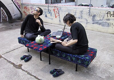 Die Transformation des orange-roten Plüschsitzstoffes der Busse der Berliner Verkehrsbetriebe in den Privatbereich hat neben einer erfolgreichen Modekollektion die Idee eines Sofas entstehen lassen. Noch vor der Vision eines Designs steht sein Name fest: das "Nahverkehrs-Sofa".