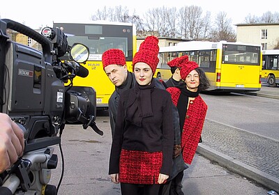 Image-Kampagne BVG. Stärkung des Images der Öffentlichen Verkehrsbetriebe Berlin, BVG, durch Entwurf, Produktion und Marketing einer Chanel-Mode aus dem orangerotkarierten Woll-Sitzstoff der Berliner Busse für die 100 Jahrfeier der BVG im Jahr 2002. Unterstützung durch Partner für Berlin. Es erfolgte ein überwältigendes Presseecho, unzählige Zeitungs- und TV-Reportagen wurden erstellt, eine Reuters-Reportage wurde über CNN weltweit gesendet.