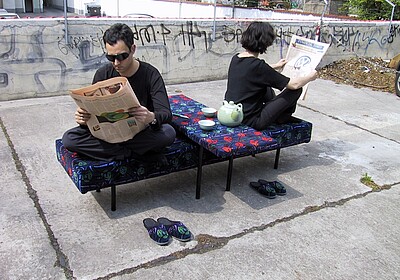 Die Transformation des orange-roten Plüschsitzstoffes der Busse der Berliner Verkehrsbetriebe in den Privatbereich hat neben einer erfolgreichen Modekollektion die Idee eines Sofas entstehen lassen. Noch vor der Vision eines Designs steht sein Name fest: das "Nahverkehrs-Sofa".